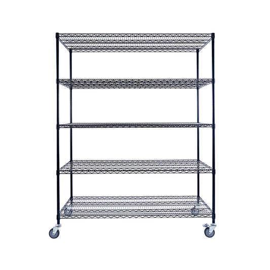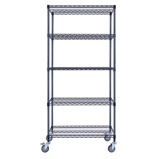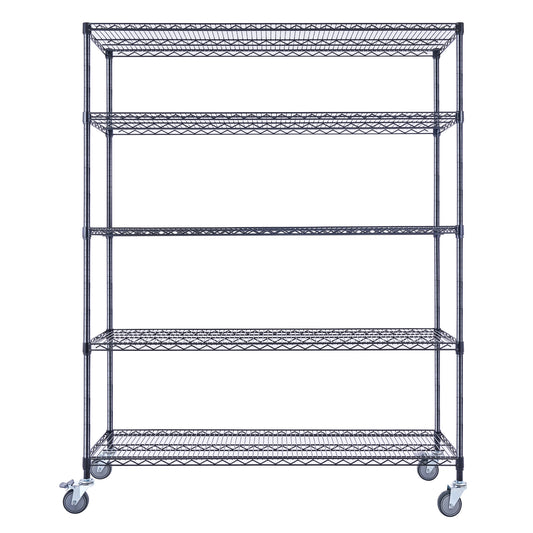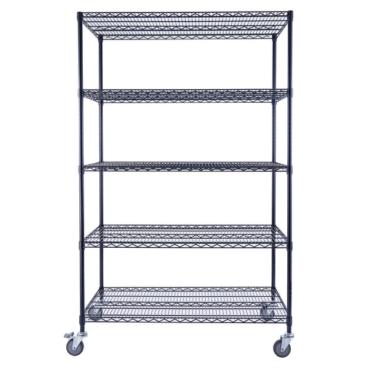 48"W x 18"D x 72"H Shelving with Wheels | Black | NSF Certified | 5-Tier