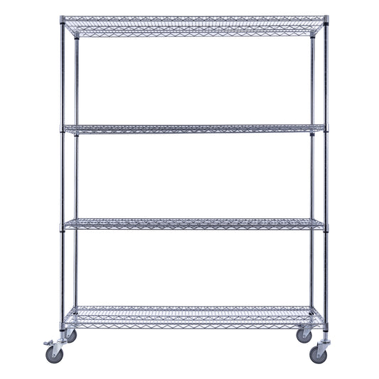 60"W x 18"D x 72"H Shelving on Wheels | NSF Certified | Chrome | 4-Tier